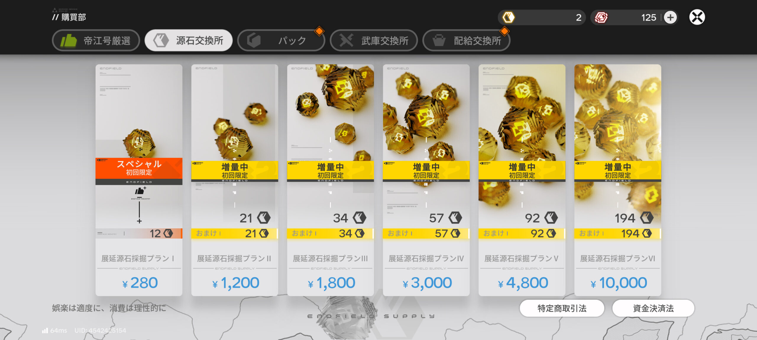 初回限定で、どの内容も倍量の源石を購入できるようになっています。