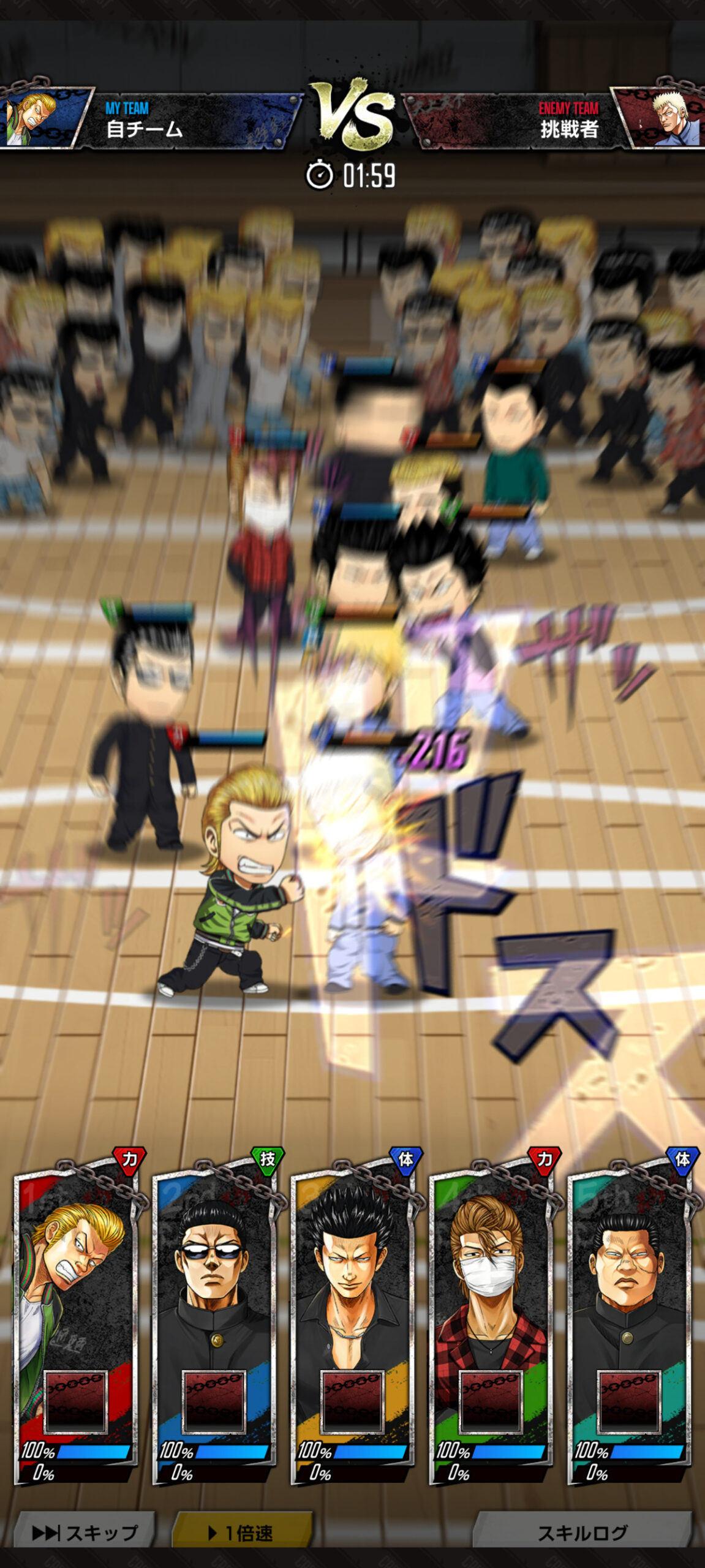 強化に必要なものをバトルで集め、好きなキャラクター、または最強チームに必要不可欠な不良の育成を楽しみましょう。