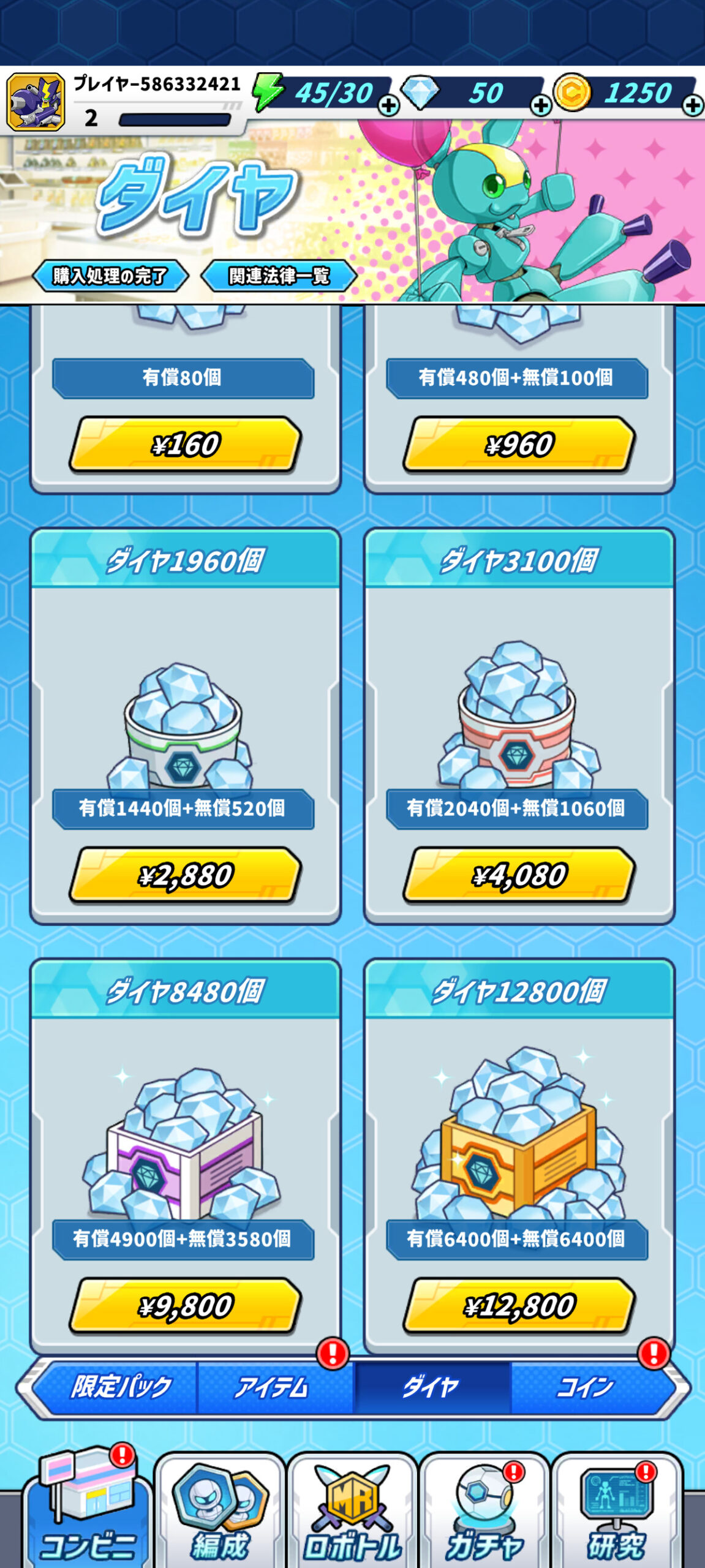 ガチャチケット、SUPERメダロットガチャチケット、そしてコインとダイヤをセットで買えます。
